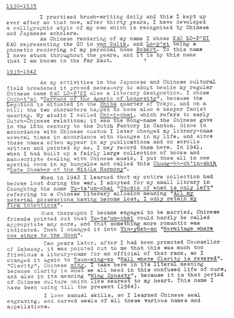 Opmerking De moderne transcriptie van de Chinese naam van Van Gulik luidt: 高羅佩 = Gao Luo-pei (traditioneel Chinees) 高罗佩 = Gao Luo-pei (vereenvoudigd Chinees) Scan van de versie in de bibliografie |
