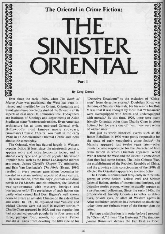Titel: The Oriental in Mystery Fiction, part I